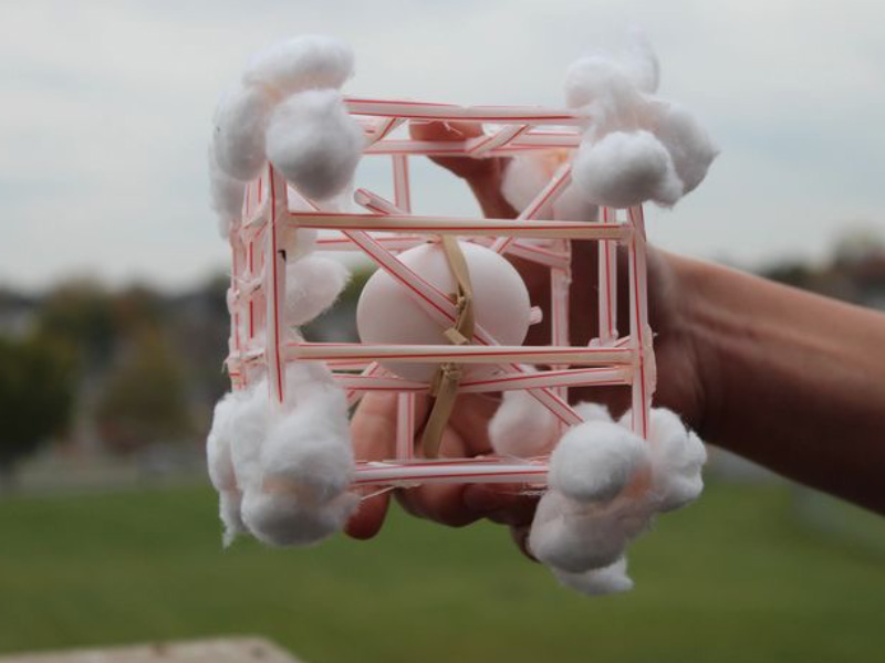 C’est l’heure des sciences! Seras-tu capable de créer une structure qui absorbera le choc afin que ton oeuf ne se casse pas?